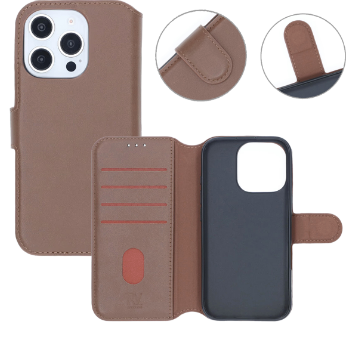 iPhone 16 Pro Plånboksfodral Äkta Läder Rvelon - Brun